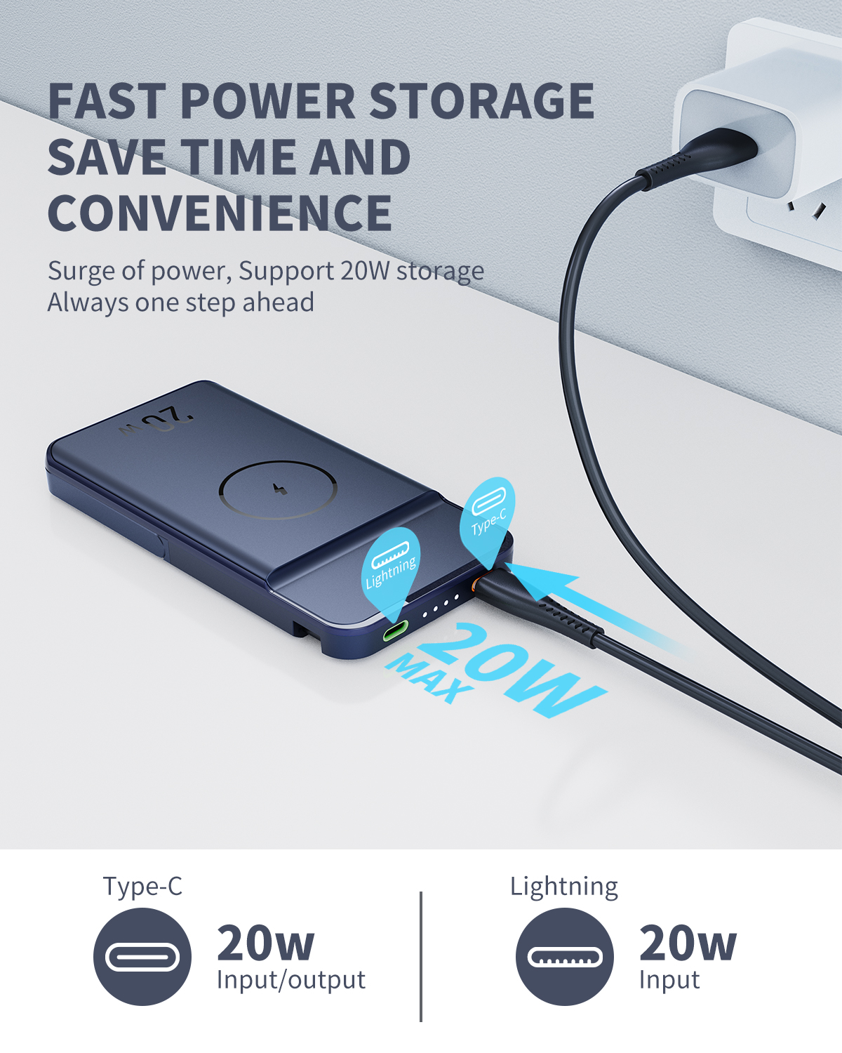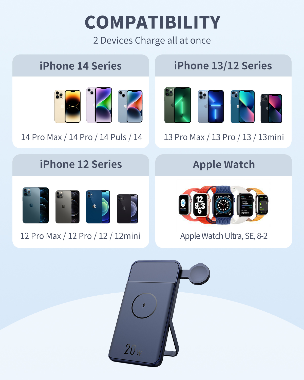 3 in 1 MagSafe Power Bank-MP011.10000mAh battery capacity.2.3-in-1 magnetic charging treasure for iPhon12, AirPods, Apple watch.3.Foldable design, eas...