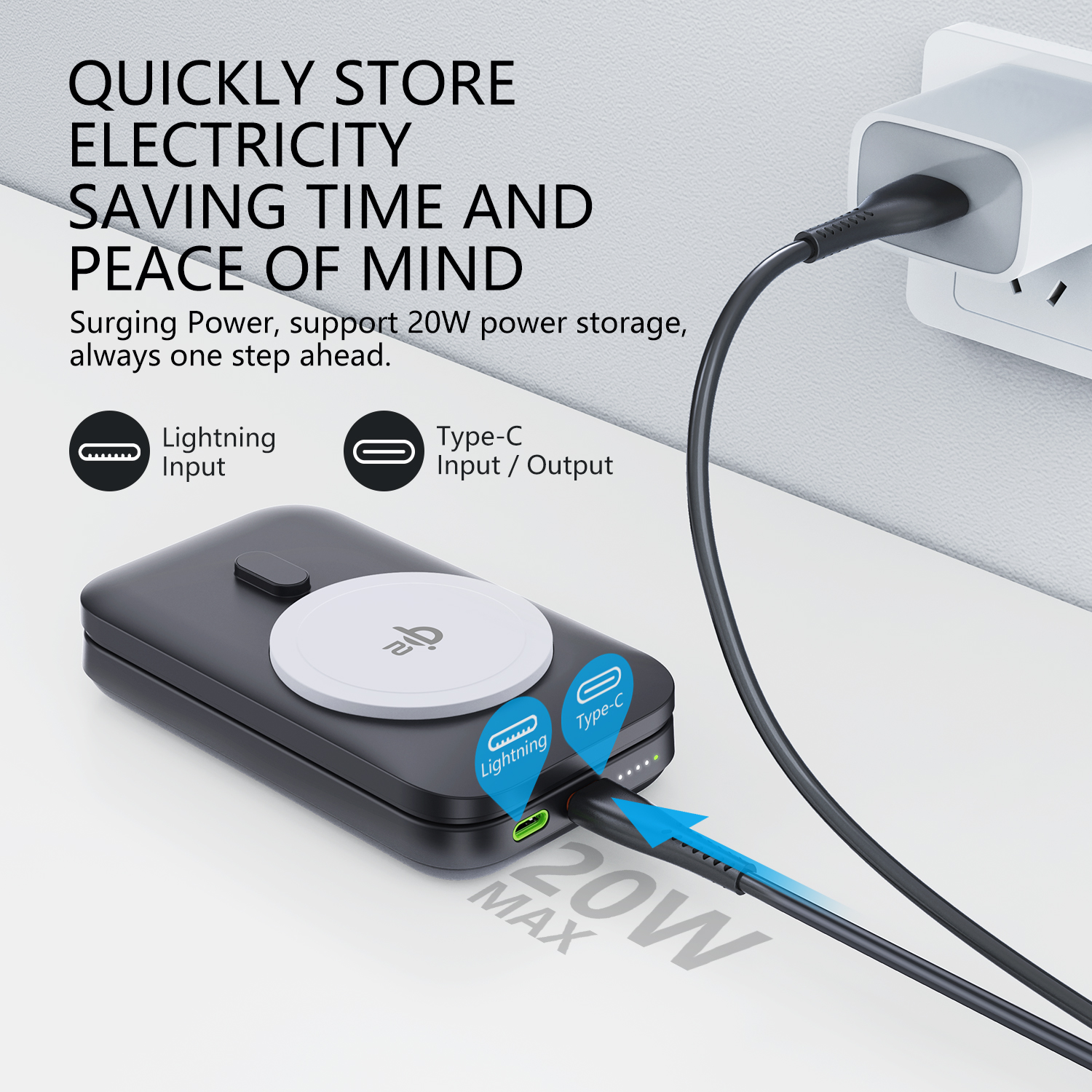 4.Fast wireless charging, wired input and output 20W.