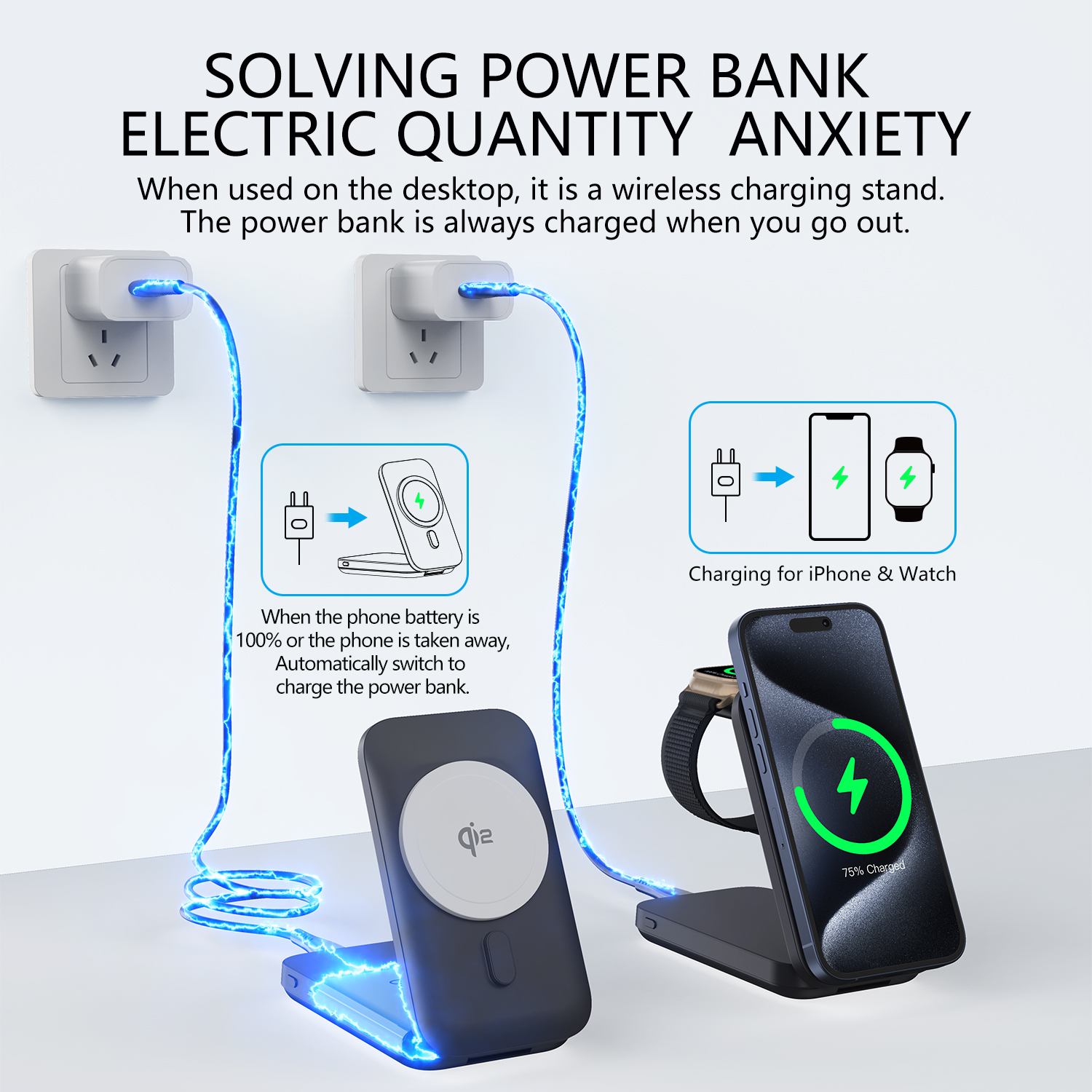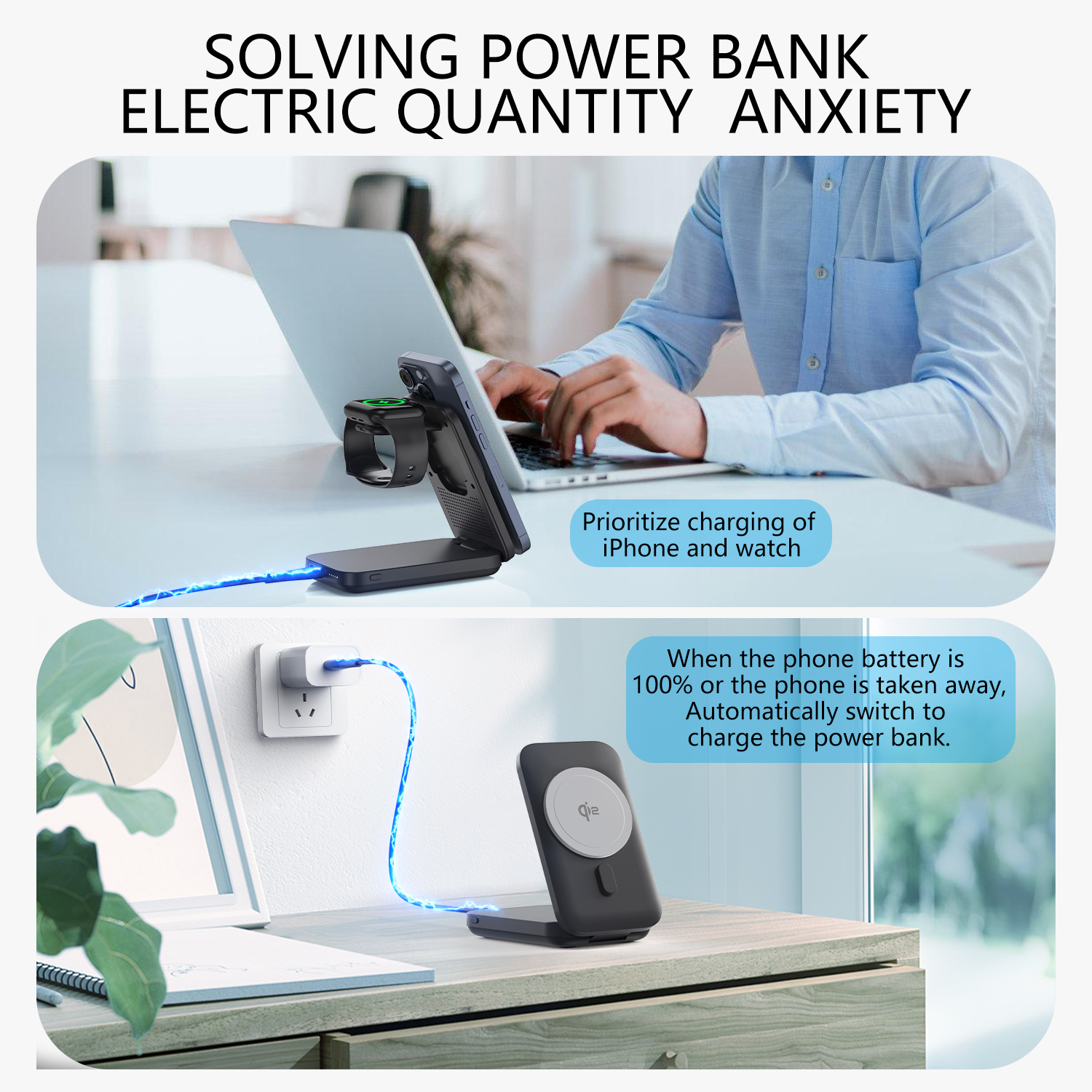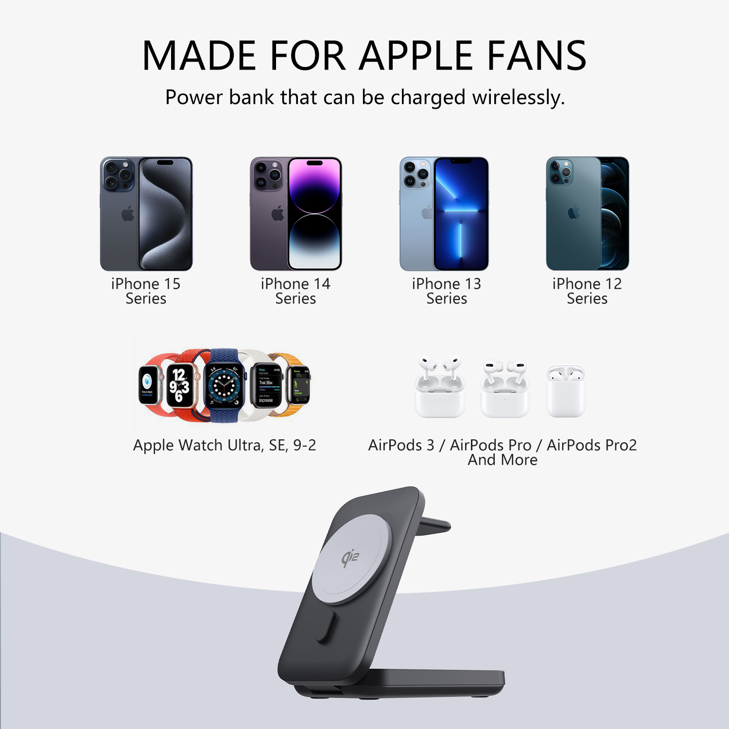 2.3-in-1 magnetic charging treasure for iPhon12, AirPods, Apple watch.