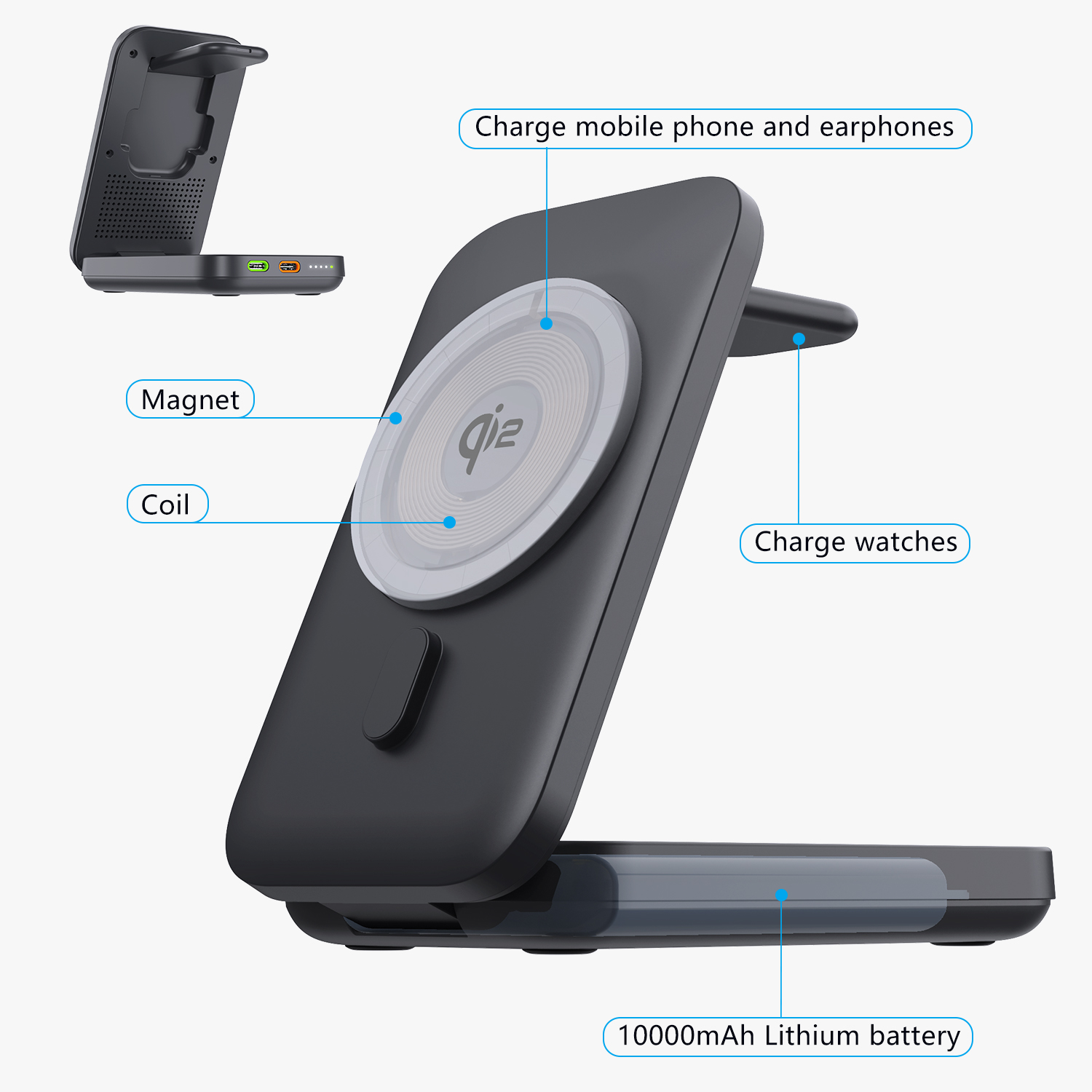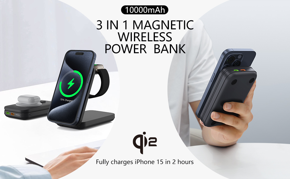 3 in 1 MagSafe Power Bank-MP101.10000mAh battery capacity.2.3-in-1 magnetic charging treasure for iPhon12, AirPods, Apple watch.3.Foldable design, eas...