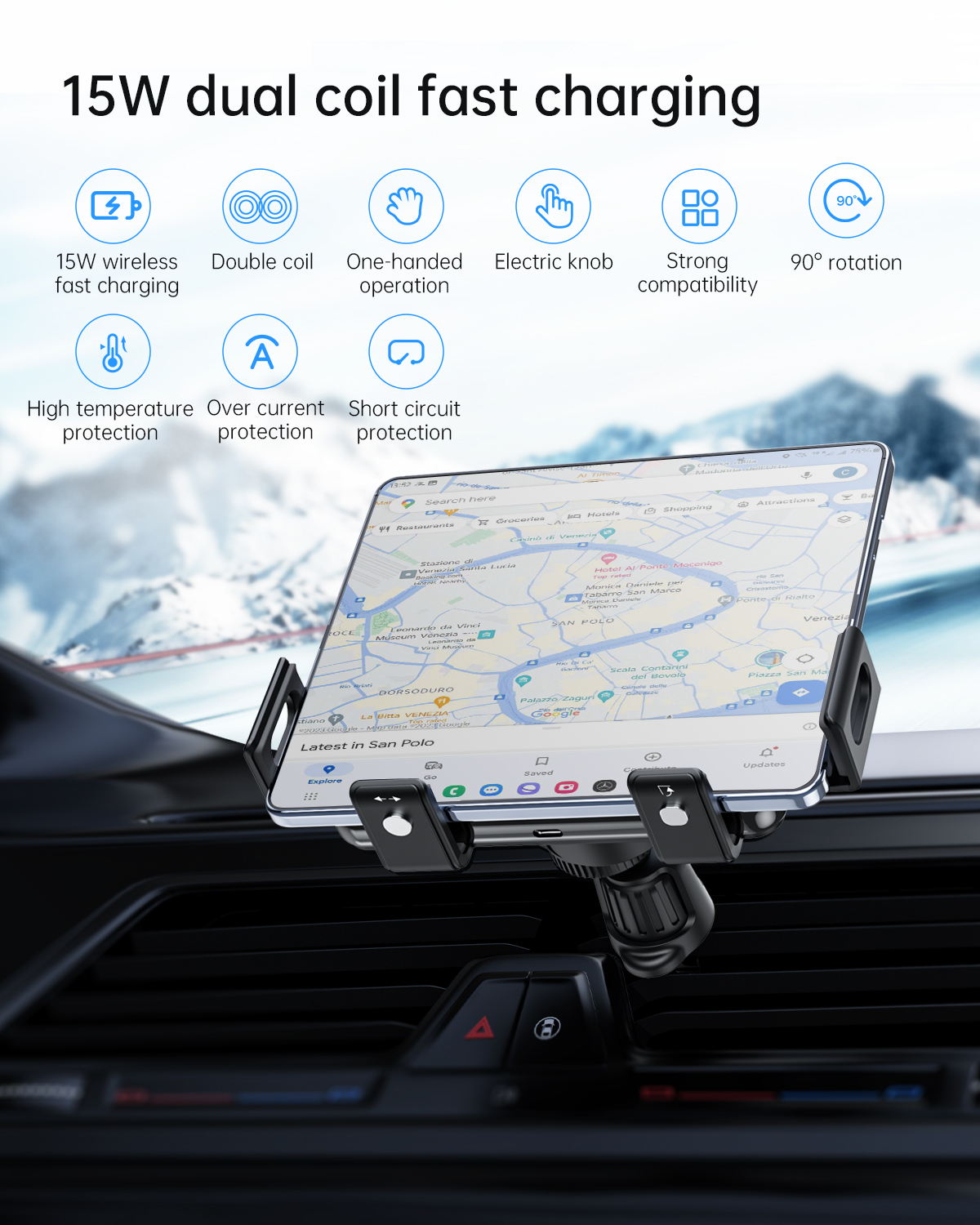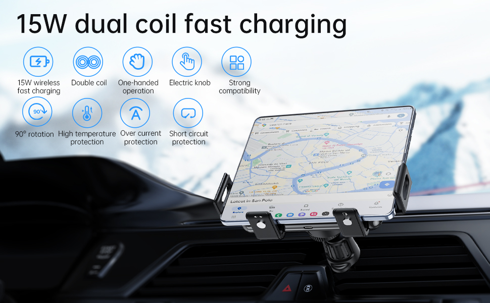 1. Fast in-car wireless charger, clamping navigation and wireless charging at the same time, bringing you a safe and convenient driving experience.